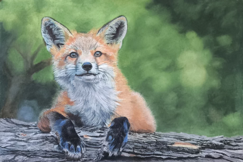 Cette peinture animalière contemporaine représente un renard roux observé dans son environnement naturel. En tant que peintre animalier, je cherche à saisir l’expression et la présence de l’animal dans un instant calme, entre observation et interprétation artistique. Le travail du pastel permet de restituer la douceur du pelage et la lumière du paysage.